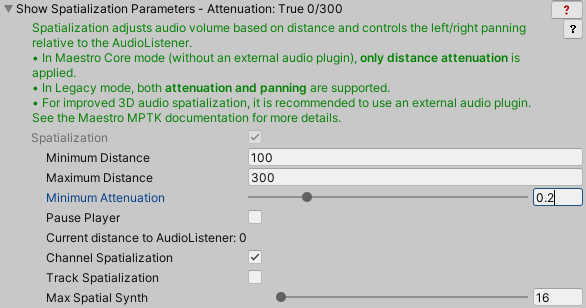 - In Maestro Core mode (without an external audio plugin), only distance attenuation is applied.