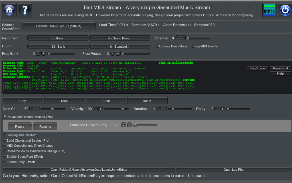 Need flexibility? You got it. Assign a unique SoundFont to each MIDI player, allowing fully customized playback across instruments, scenes, or users. And for those who prefer the classic setup, our legacy mode still supports loading from the built-in MPTK database.